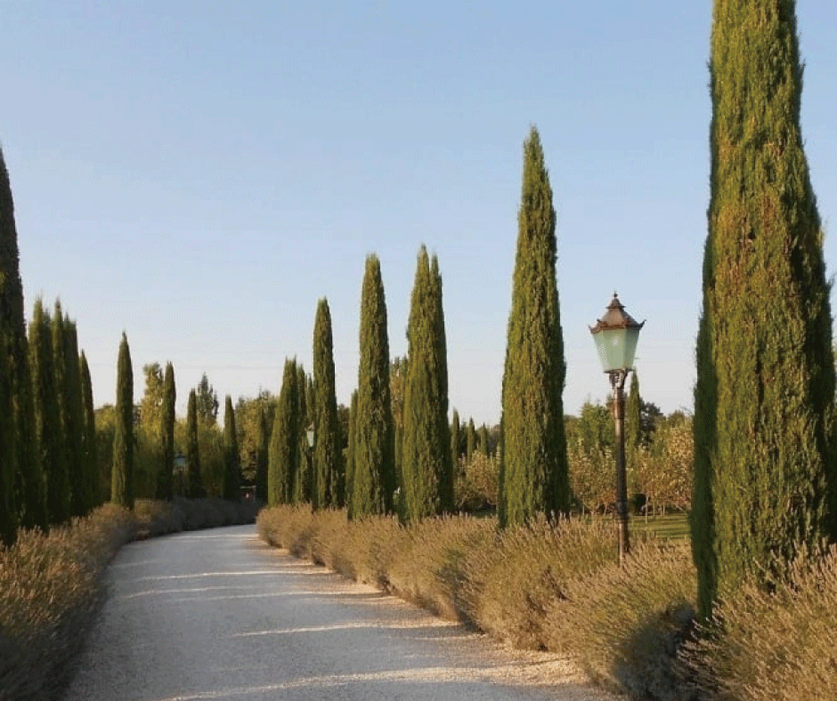 左側黑色植物則是絲柏樹