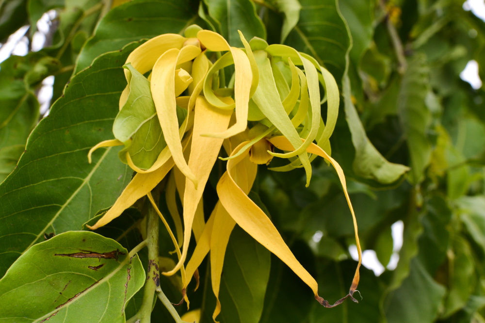 掛在樹上的依蘭,微風吹拂下,有如空中的精靈,迎風飛舞,醉人香氣撲鼻而來,無不令人陶醉